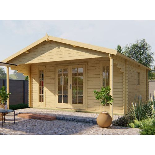 U heeft de optie om de blokhut uit te breiden met een houten vloer. Deze zijn te bestellen in twee diktes en er is de mogelijkheid om dit geïmpregneerd te laten leveren.