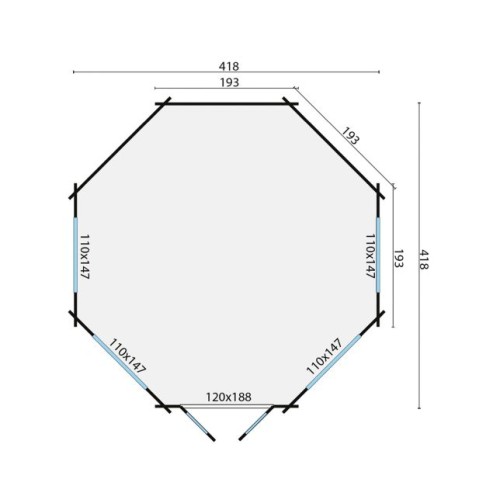 Afmeting blokhut 418x418 cm