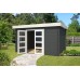 Verduurzaam uw blokhut door u blokhut, tuinhuis of overkapping trendy kleur te geven. U heeft de mogelijkheid uit 2 moderne kleuren waarbij de deuren en boeidelen wit worden gecoat: