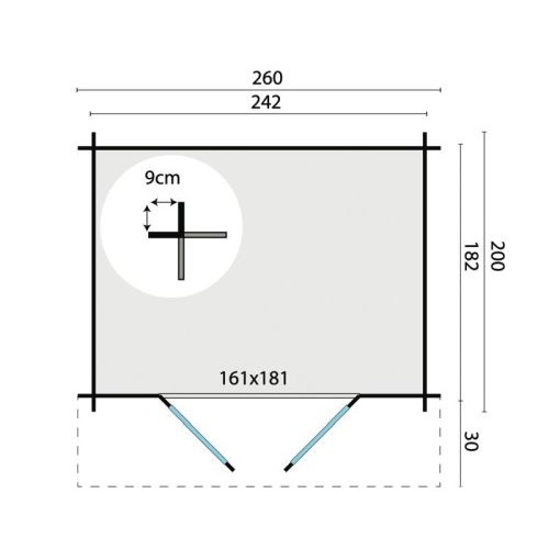 U heeft de optie om de blokhut uit te breiden met een houten vloer. Deze zijn te bestellen in twee diktes en er is de mogelijkheid om dit geïmpregneerd te laten leveren.
