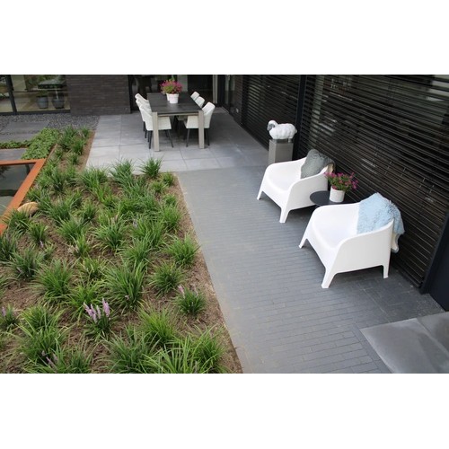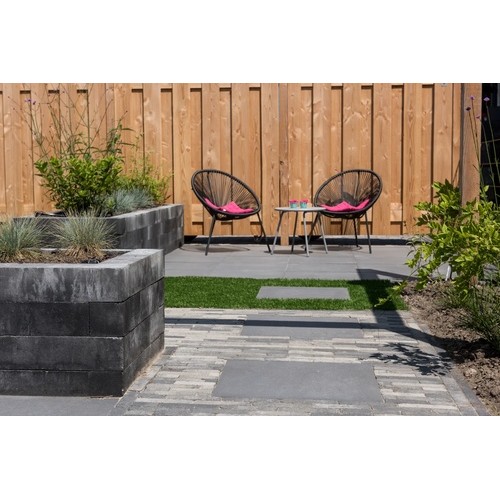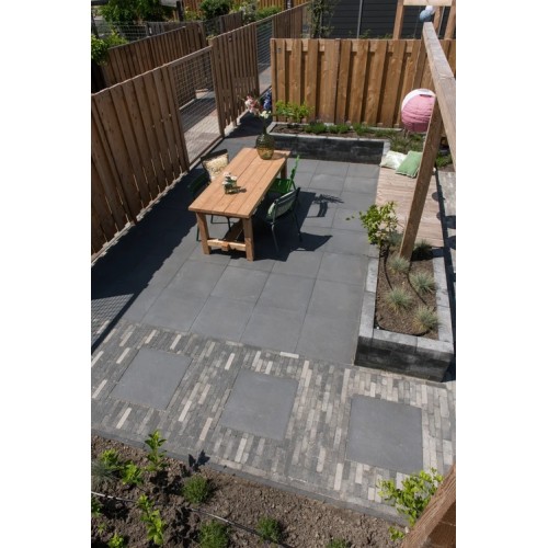 Tijdens het snijden van tegels, bijvoorbeeld tijdens het bestraten van uw tuin of terras, gaat er een klein oppervlak verloren. Dit noemen we knip- en snijverlies. Ook kunnen de tegels tijdens het leggen onverwachts afbreken of beschadigd raken. Het is daarom goed om altijd extra tegels achter de hand te hebben. Het advies is om 5% meer bestrating te bestellen.