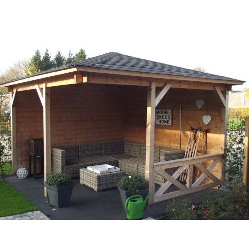 Paviljoen P3555 Interflex 370x370 cm. Dit paviljoen wordt standaard onbehandeld geleverd, maar is ook in behandelde variant te bestellen.