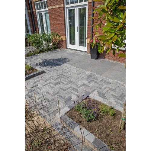Tijdens het snijden van tegels, bijvoorbeeld tijdens het bestraten van uw tuin of terras, gaat er een klein oppervlak verloren. Dit noemen we knip- en snijverlies. Ook kunnen de tegels tijdens het leggen onverwachts afbreken of beschadigd raken. Het is daarom goed om altijd extra tegels achter de hand te hebben. Het advies is om 5% meer bestrating te bestellen.