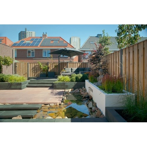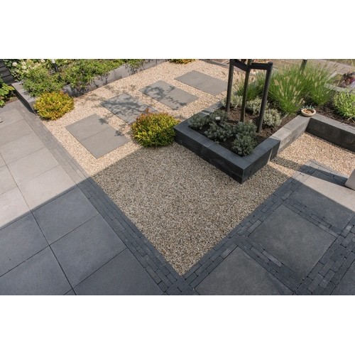 Tijdens het snijden van tegels, bijvoorbeeld tijdens het bestraten van uw tuin of terras, gaat er een klein oppervlak verloren. Dit noemen we knip- en snijverlies. Ook kunnen de tegels tijdens het leggen onverwachts afbreken of beschadigd raken. Het is daarom goed om altijd extra tegels achter de hand te hebben. Het advies is om 5% meer bestrating te bestellen.