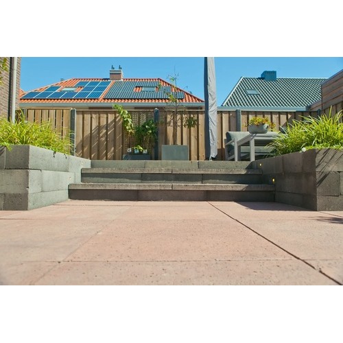 Tijdens het snijden van tegels, bijvoorbeeld tijdens het bestraten van uw tuin of terras, gaat er een klein oppervlak verloren. Dit noemen we knip- en snijverlies. Ook kunnen de tegels tijdens het leggen onverwachts afbreken of beschadigd raken. Het is daarom goed om altijd extra tegels achter de hand te hebben. Het advies is om 5% meer bestrating te bestellen.
