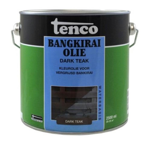 Tenco Bangkiraiolie is speciaal bestemd voor het behandelen van objecten van Bangkirai en andere tropisch hardhoutsoorten, zoals tuinvlonders, schuttingen, bruggen enz. Biedt een uitstekende bescherming, dringt diep in het hout, voorkomt vergrijzing en accentueert de houtnerf. Tenco Bangkiraiolie is samengesteld uit hoogwaardige olien geemulgeerd in water, is oplosmiddelvrij dus minder belastend voor het milieu.