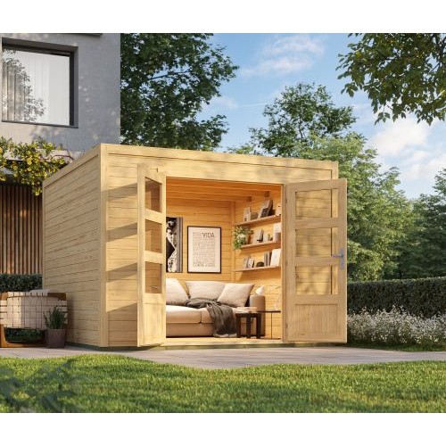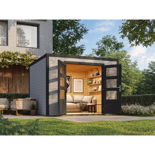 Verduurzaam uw blokhut door u blokhut, tuinhuis of overkapping trendy kleur te geven. U heeft de mogelijkheid uit 2 moderne kleuren waarbij de deuren en boeidelen wit worden gecoat:
