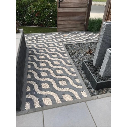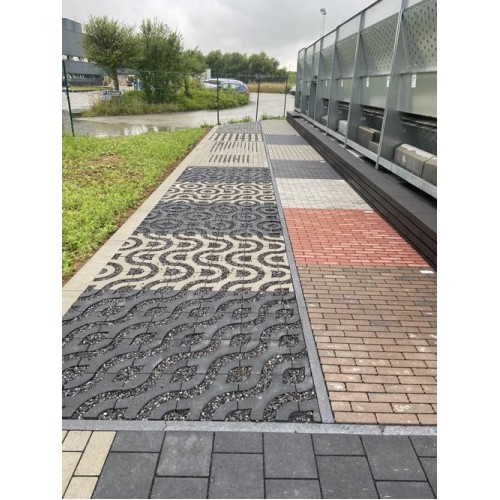 Extra info Waterpasserende klinkers met deklaag. Geschikt voor kiezels en gras (± 0,46 m2 per m2). Door het vernieuwende design in 6 verschillende patronen te leggen.