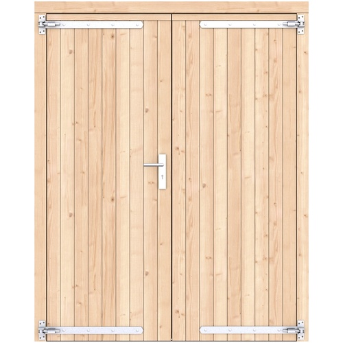 Vuren dichte dubbele deur 168x209 cm ld verzinkte hengen RVS beslag onbehandeld 1073242