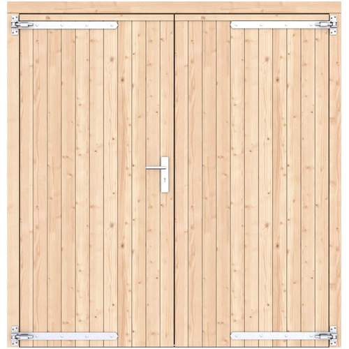 Vuren dichte dubbele deur 201x209 cm ld verzinkte hengen RVS beslag groen geïmpregneerd 1073341