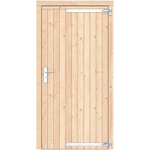 Vuren dichte enkele deur 108x209 cm rd verzinkte hengen RVS beslag onbehandeld 1073238
