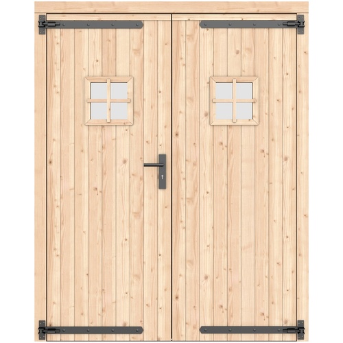 Vuren dubbele deur 168x209 cm ld zwart beslag onbehandeld 1073267